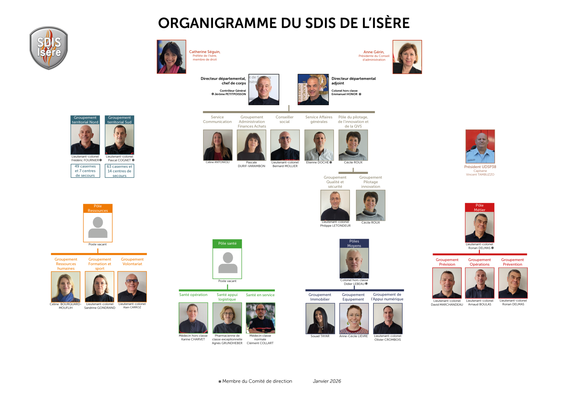 Le Service départemental d'incendie et de secours de l’Isère est dirigé par le Contrôleur Général Jérôme Petitpoisson, directeur départemental, chef de corps.